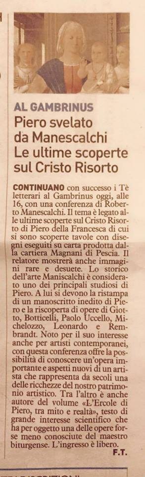 L’originale Resurrezione di Piero – Conferenza25/01/2015/in Eventi, Novità, Piero della Francesca/da roberto25 gennaio 2015, 16.30 Caffè Letterario Gambrinus, Montecatini Terme Disponibile da metà febbraio: Correlati https://i0.wp.com/robertomanescalchi.com/wp-content/uploads/2015/02/resurrezione-montecatini.jpg?fit=679%2C960&ssl=1 960 679 roberto http://robertomanescalchi.com/wp-content/uploads/2013/04/logo.jpg roberto2015-01-25 21:10:292015-02-01 21:34:34L’originale Resurrezione di Piero – Conferenza